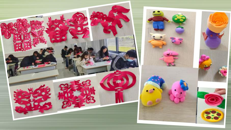 李敏老师则立足财会专业特色,分两次开展传统剪纸、专业点钞、创意橡皮泥手工三大实践。传统剪纸课堂上,同学们剪出 “春”“福” 及花鸟、骏马等精美图案,感受非遗文化魅力,厚植文化自信;专业点钞训练紧扣专业需求,手把手指导手持式点钞技法,夯实财会实操基础,提升职业素养;创意手工课上,大家发挥想象力,在创作中锻炼创意思维、协作能力与审美能力,实现以劳增智、以劳育美。