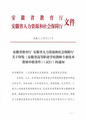 关于印发《安徽省高等职业学校教师专业技术资格申报条件》(试行)的通知